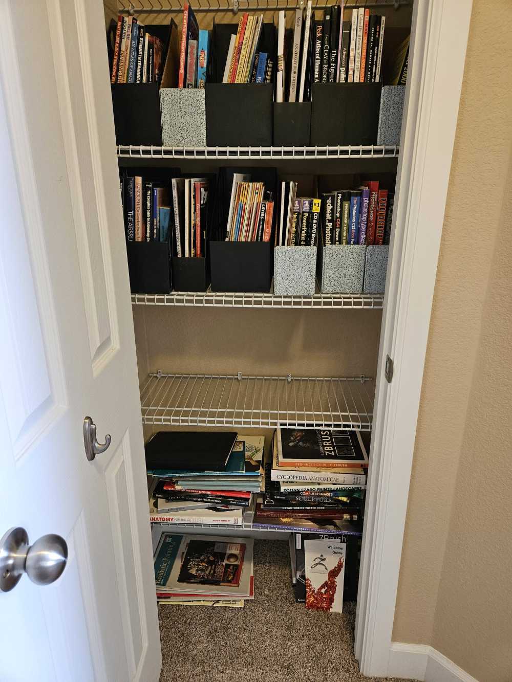 This sale has MANY TREASURES including beautiful home decor and furniture including a sofa, coffee tables, end tables and a TV stand. Various sized Quilts! SHELVES of various sizes. Kitchen and bake ware, garage goods, smalls/collectibles, computer monitors, office and art supplies. ARTWORK. Books and clothing. Design and artwork software. Electronics and SO MUCH MORE! Everything pictured is available.